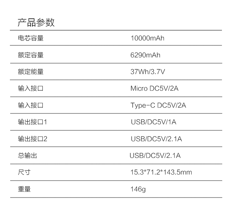 参数 : 10000mAh