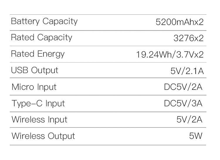 参数 : 5200mAhx2
